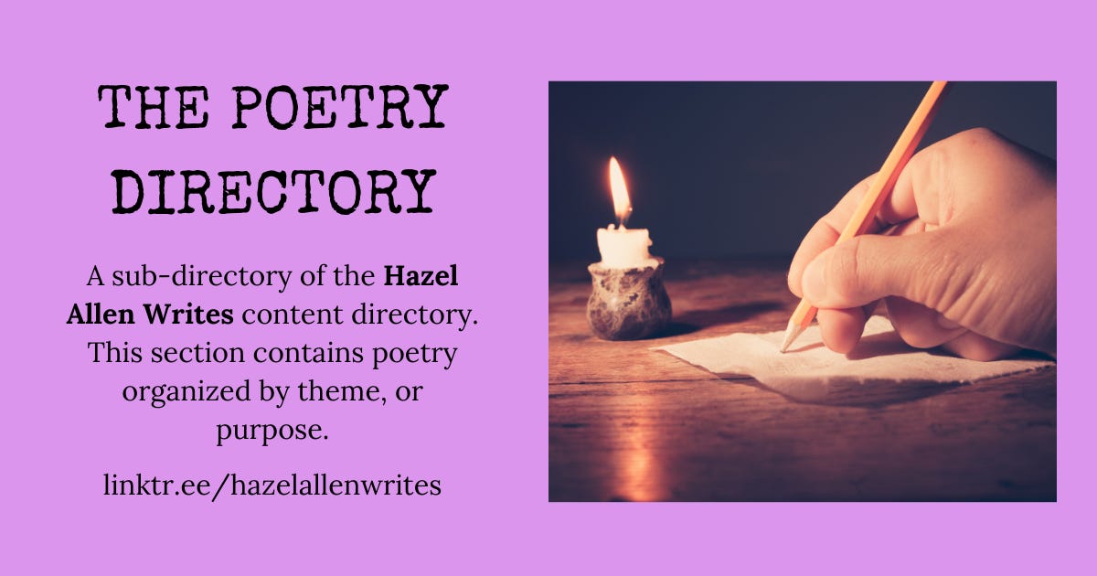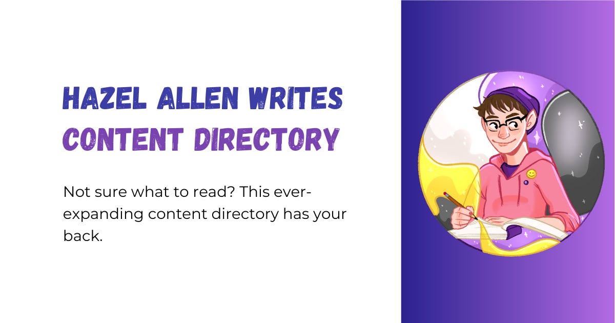 Hey everyone! Welcome to the ever expanding content directory for Hazel Allen Writes. Feeling inspired by